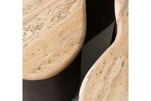 Als kers op de taart is de tafel afgewerkt met een blad van travertin, een natuursteen die helemaal terug is van weggeweest. Travertin heeft een lichte kleur die varieert van crème tot beige, met unieke aderingen en texturen, wat elke tafel een authentiek en luxueus karakter geeft. Deze natuurlijke uitstraling maakt Davi de perfecte keuze voor wie een verfijnde, maar gezellige sfeer in huis wil creëren.