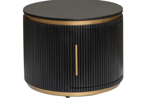 Salontafel Rivello NL 0033 van het merk Tower Living is gemaakt van mangohout. Mangohout kun je herkennen aan de vele kleurschakeringen en ongelijkheden in het oppervlakte van het hout, waardoor geen enkel meubelstuk hetzelfde is. De kleuren in mangohout kunnen variëren van lichte- tot donkere tonen. De ronde salontafel heeft een deur met een opbergruimte. De zwarte kleur met gouden accenten is een stijlvolle en elegante toevoeging aan elk interieur.