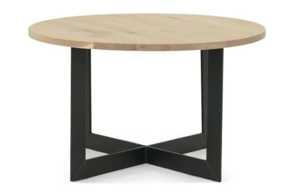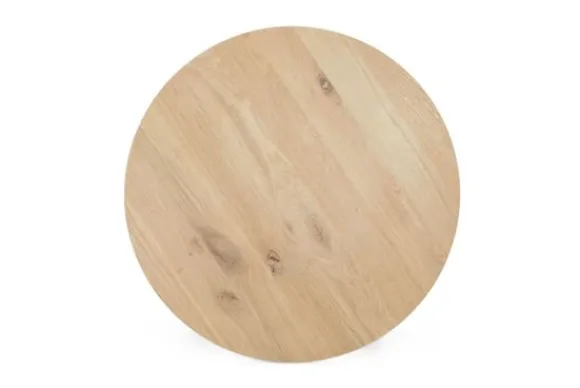 Salontafel Manifest van het merk Van Dijk Furniture heeft een rond tafelblad van 100% massief eikenhout. Door het natuurlijke materiaal is geen enkel exemplaar hetzelfde, wat elke tafel een uniek karakter geeft.