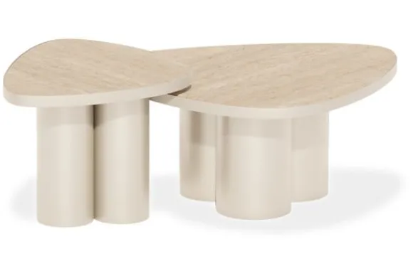 Salontafelset Cassian van het merk BL Design is beschikbaar met een tafelblad van marmer. Marmer is een duurzame steensoort en heeft een luxe en stijlvolle uitstraling. De salontafels zijn hier uitgevoerd met een marmer blad in de kleur Breccia Reale en poten in de kleur oyster white. De salontafels hebben een hoofte van 35 cm en van 40 cm. Bij deze set is ook een verkrijgbaar.