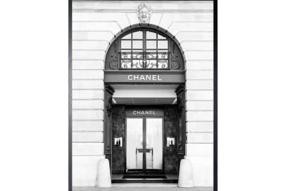 Art Print Gevel Chanel FA-113 van het merk Luxe Framing Art is verkrijgbaar in verschillende afmetingen. Op deze zwart-witprint staat een winkelgevel van Chanel. Deze Art Print wordt standaard geleverd met een zwarte lijst.