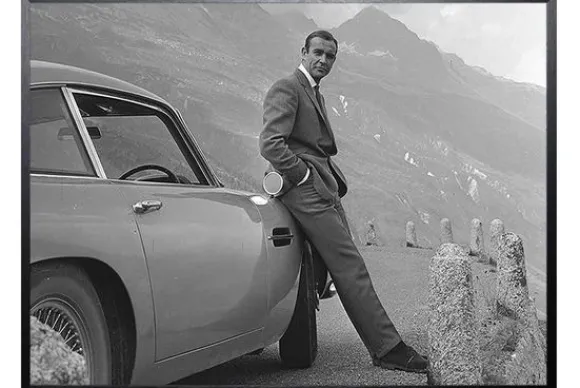 Art Print Sean Connery APA209-TU01 van het merk Luxe Framing Art is verkrijgbaar in verschillende maten. Het is een zwart-witfoto van Sean Connery die tegen een auto leunt. Deze Art Print is inclusief lijst, dat maakt de totale afmeting drie centimeter hoger en drie centimeter breder.