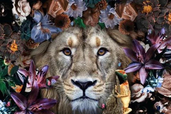 Schilderijen-Ter Halle Glasschilderij Leeuw tropisch 080120-750