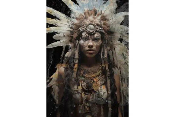Glasschilderij Native 080120-1031 van het merk Ter Halle is 80 cm breed en 120 cm hoog. Op dit schilderij is een vrouw afgebeeld met een hoofdtooi. Een glasschilderij heeft levendige kleuren, een glanzende afwerking en een realistisch diepte-effect. Al deze eigenschappen zorgen voor de luxe uitstraling van een glasschilderij. Dit schilderij wordt met een ophangsysteem geleverd.