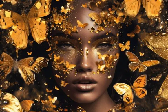 Schilderijen-Ter Halle Glasschilderij Vrouw met Gouden Vlinders 110160BS-647