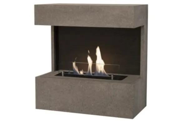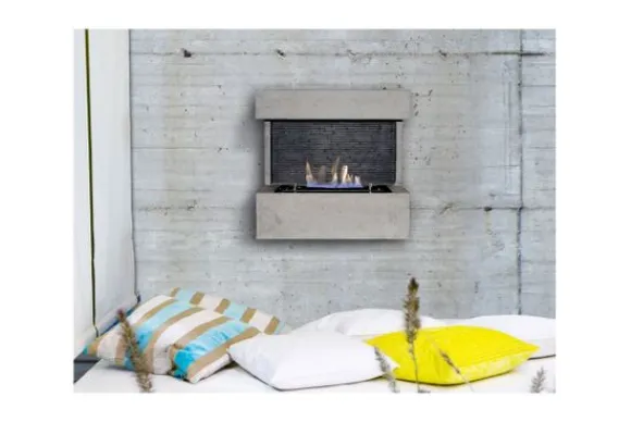 De haard heeft als achterwand een zwart paneel waarmee extra diepte in het vuurbeeld gecreëerd wordt. De betonlook is gecreëerd met een composiet materiaal. Composiet is licht en watervast.