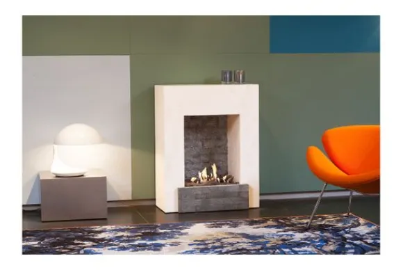 De ombouw is van Fossil Stone, dit is een unieke steensoort die overeenkomt met ruw of gepolijst marmer, bevestigd op een houten ondergrond. Hierdoor ontstaat het gevoel en de uitstraling van echt marmer. Toch is het gewicht relatief laag en hierdoor is een Fossil Stone schouw gemakkelijk te verplaatsen. Fossil Stone is een natuurproduct; er kunnen kleine kleur- en/of structuurafwijkingen voorkomen. Hierdoor heeft iedere schouw een eigen, uniek karakter.