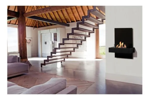 Deze haard wordt standaard uitgevoerd met een zwart metalen paneel en een bio ethanol brander.