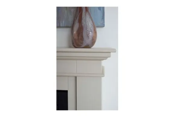 Deze haard wordt standaard uitgevoerd met een schouw van MDF in de kleur wit RAL 9010 en een Opti-Myst Cassette 600.