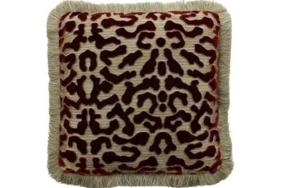 Sierkussen Talissa Burned Orange + Fringe Gold van het merk Claudi is een opvallende aankleding. Het moderne patroon met dieprode fluwelen uitstraling past goed bij moderne en eclectische interieurs.