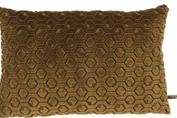 Sierkussen Michael Dark Gold van het merk Claudi voegt een luxe sfeer toe aan elke ruimte. Door het hexagon-patroon en afwisseling met goud- en zwarttinten krijgt het kussen een chique accent.