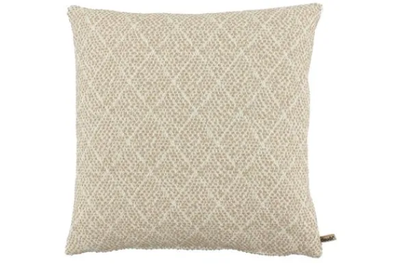 De nude-tint vormt een subtiele basis voor het geweven ruitpatroon, dat in een ton-sur-ton uitvoering als een fijn lijnenspel over het oppervlak danst. De structuur is rijk aan detail en voelt zacht aan, met een natuurlijke uitstraling die uitnodigt tot ontspannen. Het patroon geeft het kussen een decoratieve flair zonder visueel te domineren, waardoor het zich perfect laat combineren in diverse interieurstijlen.