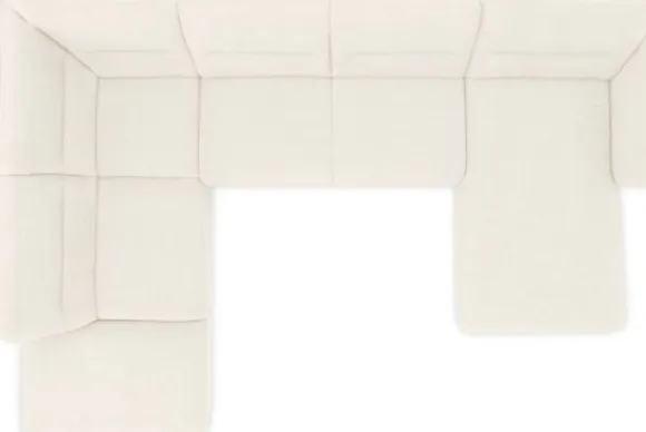 De bank is opgebouwd uit verschillende losse elementen. Hierdoor kan de bank volledig naar wens worden samengesteld. Je kunt ook kiezen voor een van de standaard opstellingen. Bij het samenstellen van de bank kan bovendien een bijpassende hocker worden toegevoegd in hetzelfde materiaal als de bank.