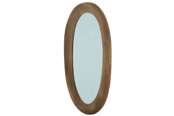 Spiegel Noam is een ovale wandspiegel met een lijst van mangohout die een warme en natuurlijke uitstraling heeft.