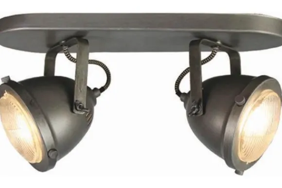 LED spot Moto 2-lichts heeft twee grote metalen ronde kappen in de kleur ”burned steel”, waarin de LED lampen zich bevinden. De kappen zijn voorzien van unieke motorglazen afkomstig uit een fabriek waar motorkoplampen worden gemaakt. Op de kappen bevinden zich robuuste, ronde bouten die het naast hun schoonheid ook mogelijk maken de spots van boven naar beneden te laten bewegen om de gewenste richting te bepalen. Het draaibare, metalen frame, waar de kap tussen hangt is bevestigd aan de langwerpige plafondplaat.