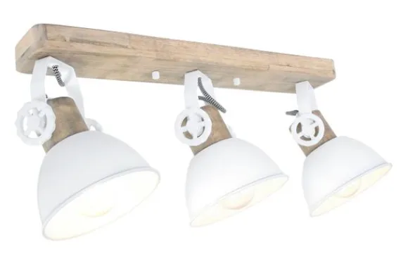 Plafondlamp 2133W Mexlite Gearwood van het merk Steinhauer is een stoere witte 3-lichts plafondlamp. Deze industriële lamp is draaibaar en kantelbaar door middel van grote verstel wielen. De lamp beschikt over een E27 fitting en is geschikt voor alle lichtbronnen tot maximaal 40 Watt. De lamp is dimbaar door middel van een externe dimmer en geschikte lichtbron. Deze worden niet meegeleverd. De lamp is vervaardigd uit metaal met houten accenten en heeft een mat witte reflector. De diameter van de kap is 15 centimeter en de totale hoogte van het armatuur is 19 centimeter.