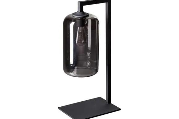 Tafellamp The John van het merk ETH is niet alleen mooi wanneer hij brand. Overdag is het ook zeker een plaatje om naar te kijken. De lampenkap is voorzien van smoky glas die hangt aan een metalen frame met een zwarte poedercoating. Door het gekleurde glas geeft de lichtbron sfeervol licht, waardoor het licht niet te fel is. De The John lampencollectie bestaat uit een vloer- en tafellamp.