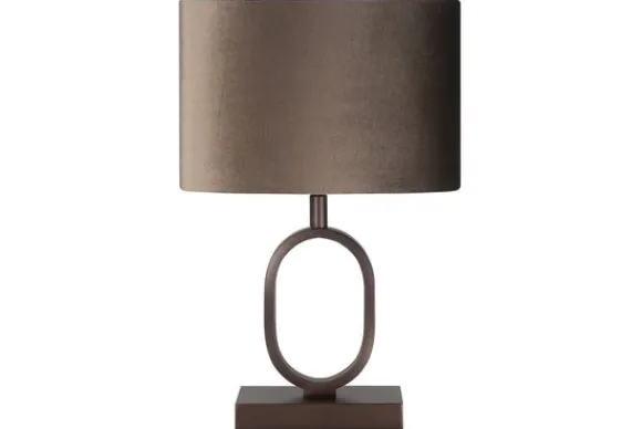 De lamp heeft een metalen voet met een open ovale vorm en is afgewerkt met een linnen lampenkap in een bijpassende kleur. Deze combinatie zorgt voor een zachte lichtuitstraling en een prettig geheel op een dressoir, bijzettafel of nachtkastje.