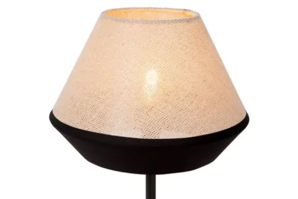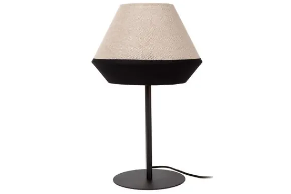 Tafellamp Kala van het merk Lucide heeft een strak en eigentijds ontwerp met een speelse twist. De combinatie van een zwarte metalen voet en een tweekleurige linnen kap geeft de lamp een stijlvol contrast dat moeiteloos past in zowel moderne als minimalistische interieurs.