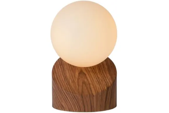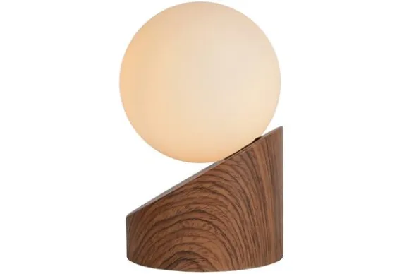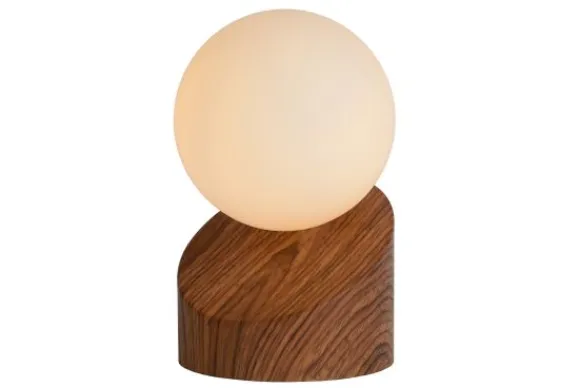 Tafellamp Len van het merk Lucide is een speels en sfeervol lichtobject dat de warmte van houtlook combineert met de zachtheid van opaalglas. De ronde glazen bol lijkt haast te zweven boven de afgeronde voet, waardoor een samenspel van vorm en licht ontstaat.