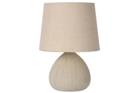 Tafellamp Ramzi van het merk Lucide combineert een strak ontwerp met natuurlijke materialen. De keramieken voet heeft een afgeronde vorm en een lichte structuur die zorgt voor een rustige, eigentijdse uitstraling.