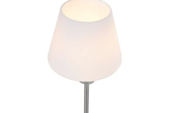 Tafellamp Ancilla van het merk Steinhauer is een elegante stalen tafellamp met een kap van opaal wit glas. Het tijdloze ontwerp maakt de lamp geschikt voor diverse interieurstijlen.