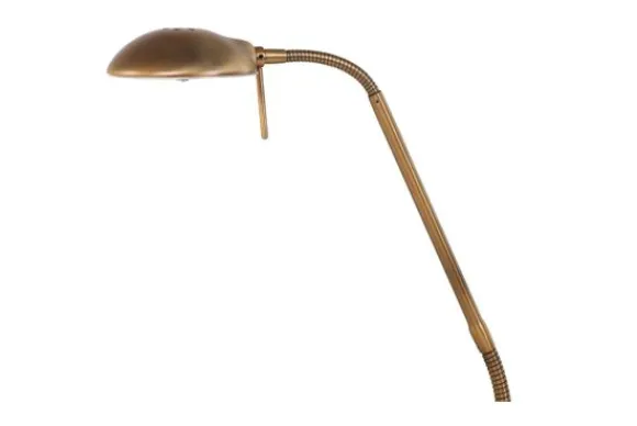 Tafellamp 7502BR Biron van het merk Mexlite is vervaardigd van bronskleurig geborsteld staal. De lamp is voorzien van een 8 Watt LED lichtbron, welke gedimd kan worden door middel van de draaidimmer. De kleurtemperatuur van de lichtbron is 2700 Kelvin met een lichtopbrengst van 650 Lumen. De leesarm is 48 cm lang en voorzien van twee buigveren, waardoor de lamp naar wens in te stellen is. De lamp wordt geleverd inclusief snoer van 185 cm.
