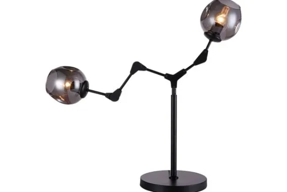Tafellamp Cas 2-lichts Zwart van het merk Toms Luxury Lights is een moderne tafellamp. Door het messing in combinatie met het gerookte glas krijgt de lamp een luxe uitstraling. De lichtbronnen zijn verstelbaar naar wens. Hierdoor kan je zorgen dat het licht precies schijnt waar jij wilt. Het glas zorgt voor een bijzondere lichtinval dat de ruimte laat stralen. Voor het mooiste effect kun je het beste een spiraal lichtbron in de lamp plaatsen. De lamp is voorzien van E27 (grote) fittingen. De tafellamp is dimbaar middels een externe dimmer en een dimbare lichtbron. De lamp wordt inclusief lichtbron geleverd.
