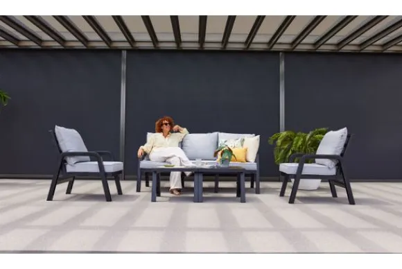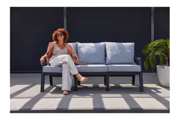 Tuinbank Ibiza 23.707.755 van het merk Hartman is een moderne tuinbank gemaakt van zwart kunststof met neutrale grijze kussens. Het frame van de set bestaat volledig uit kunststof. Dit maakt het frame ondershoudsvriendelijk en weersbestendig. De ideale combinatie om optimaal van de bank te kunnen genieten. De kussens worden meegeleverd en zijn voorzien van Olefin stof. Olefin is een zachte, lichtgewicht stof dat ontworpen is voor buitengebruik. De productie van olefin stoffen is milieuvriendelijk, het vervaardigingsproces genereert zeer weinig afval en de vezel is 100% recyclebaar. Olefin presteert ook uitmuntend als het met water te maken krijgt. Het neemt geen vocht op en het droogt zeer snel, daarnaast zal het niet verkleuren in de zon.