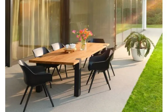 De Esmee tuintafel tafel nodigt je uit! Of het nu is voor ontbijt, lunch of diner… met de Esmee tuintafel zit je altijd goed. De Esmee heeft een robuuste en stoere uitstraling door de combinatie van teakhouten en aluminium poten. De tafel is ook gemakkelijk met vele tuinstoelen te combineren door haar natuurlijke uitstraling. De tafel kun je gerust het hele jaar door buiten laten staan.