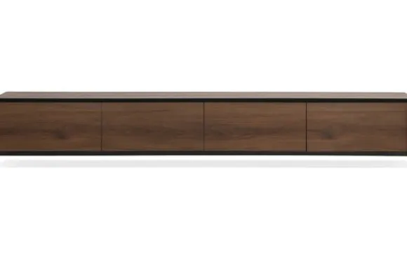 Hangend tv-meubel Compose van het merk Ideco is een moderne blikvanger die luxe en verfijning uitstraalt. De combinatie van een houten afwerking met een strak zwart metalen frame geeft het meubel een stijlvolle, minimalistische uitstraling. Deze ingetogen elegantie maakt het perfect voor een modern interieur, waar strakke lijnen en neutrale tinten samenkomen. In een Scandinavisch interieur voegt het meubel een serene, natuurlijke touch toe, terwijl het in een industriële setting zorgt voor een spannend contrast tussen robuuste en verfijnde materialen.