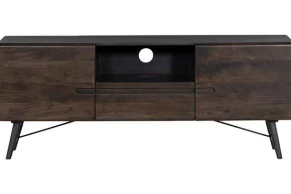 Tv-meubel Aura VF 0070 van het merk Tower Living in de kleur espresso is vervaardigd uit acaciahout, een duurzame en harde houtsoort die generaties lang mee kan gaan. Het warme karakter van het hout wordt benadrukt door de subtiele nerftekeningen die elke kast een uniek uiterlijk geven.