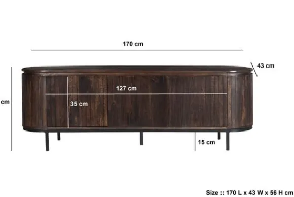 van het merk Livingfurn is een modern tv-meubel met een rustige uitstraling. Het meubel is opgebouwd uit verticale houten plankjes van mangohout. Dit zorgt voor een duidelijk lijnenspel en een natuurlijke look die goed past in verschillende interieurs.
