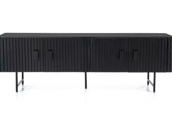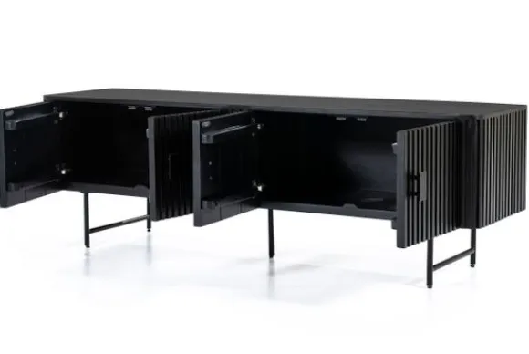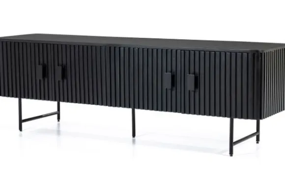 De verticale latten aan de voorzijde geven het tv-meubel een herkenbare uitstraling. Naast zwart is dit tv-meubel ook verkrijgbaar in bruin. Dit meubelstuk maakt deel uit van een complete .