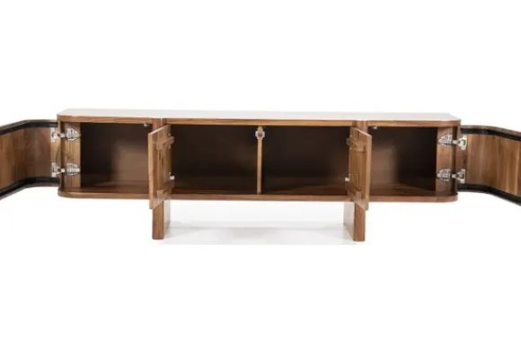Het tv-meubel is voorzien van vier deuren. Achter de deuren bevindt zich ruime opbergruimte om apparatuur en spullen netjes uit het zicht te houden. Dit meubelstuk maakt deel uit van een complete .