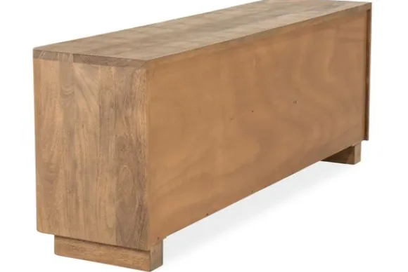 Tv-meubel Edward 96429 van het merk Eleonora is een toonbeeld van rustige luxe en moderne eenvoud. Gemaakt van een combinatie van massief mangohout en mango fineer, straalt dit meubelstuk warmte en vakmanschap uit. De geborstelde afwerking accentueert de natuurlijke houtnerf en geeft het oppervlak een subtiele textuur die zowel visueel als tactiel verrijkt.