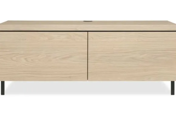 Het tv-meubel heeft standaard een klepdeur. Je kunt ook kiezen voor een uitvoering met speakerdoek. De deuren zijn te openen met een push to open systeem. Dit geeft het meubel een strak uiterlijk dat goed past in een modern of Scandinavisch interieur.