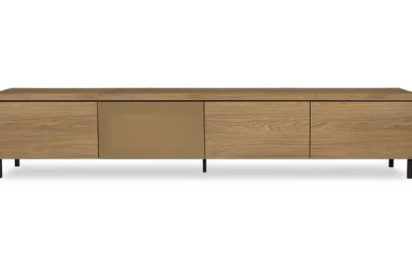 Het tv-meubel heeft standaard een klepdeur en één speakerdoek. Je kunt optioneel kiezen voor een extra speakerdeur. De deuren zijn te openen met een push to open systeem. Dit zorgt voor een strak uiterlijk dat goed aansluit in een modern of Scandinavisch interieur.