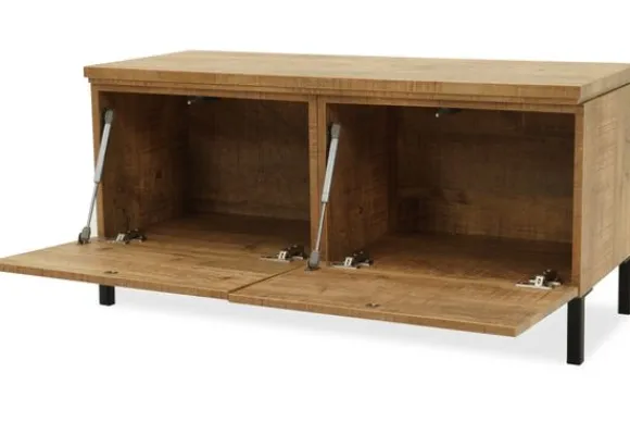 Monteer het tv-meubel hangend voor een strak effect of kies voor 12 cm hoge poten voor een luchtige look.