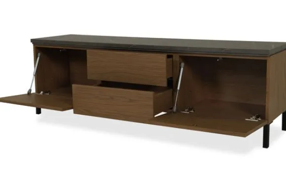 Monteer het tv-meubel hangend voor een strak effect of kies voor 12 cm hoge poten voor een luchtige look.