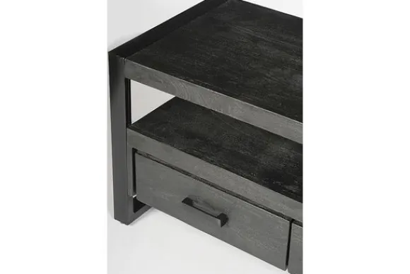 Tv-meubel Norris is gemaakt van mangohout in combinatie met gecoat staal in de kleur zwart. Mangohout is een duurzame houtsoort met een fijne nerfstructuur, waarbij ieder meubel een eigen karakter heeft. Het materiaal is sterk en geschikt voor dagelijks gebruik.