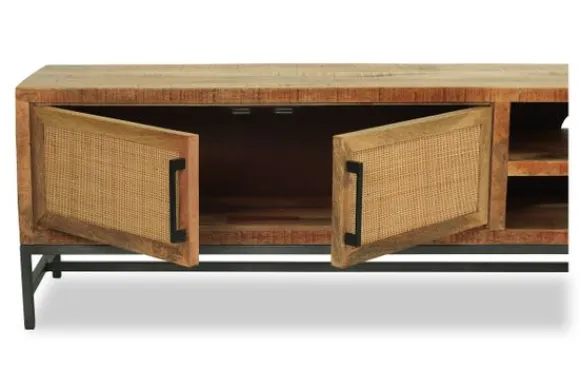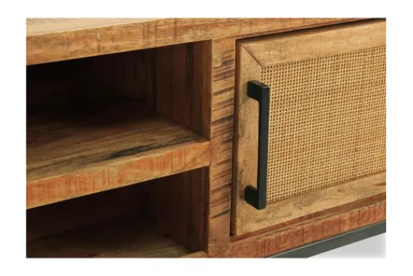 Tv-meubel Carini NA 0061 van het merk Tower Living is gemaakt van hout en webbing en staat op een metalen onderstel. Deze materialen zijn helemaal van deze tijd. De kast heeft drie deuren en twee open vakken. Ook is deze kast verkrijgbaar met twee deuren. De Renew collectie is ideaal om de lege plekken in je interieur mee op te vullen! Met veel soorten producten in verschillende stijlen, kleuren en materialen zit er voor iedereen wel wat tussen.