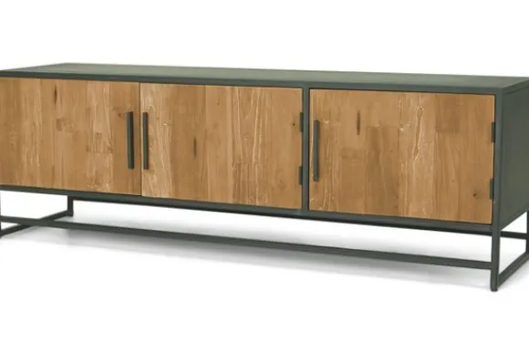 Tv-meubel Felino FI 0043 van het merk Tower Living is onderdeel van een compleet meubelprogramma. De Felino collectie bestaat volledig uit gerecycled teakhout en is vervolgens afgewerkt met een lichte white wash. Teakhout is van zeer goede kwaliteit, is sterk, duurzaam en het werkt bijna niet. Daarnaast straalt deze houtsoort warmte uit en is elk meubelstuk uniek door de noesten. De poten zijn gemaakt van metaal. Dit tv-meubel heeft drie deuren.