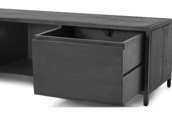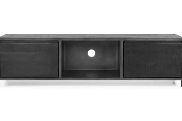 Tv-meubel Paterno NA 0103 van het merk Tower Living is gemaakt van zwart gebeitst mangohout en industrieel staal. Door het simpele ontwerp is deze meubelserie ideaal om mee te mixen en matchen. De kast heeft twee deuren en een open vak, genoeg opbermogelijkheden dus!
