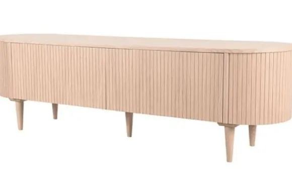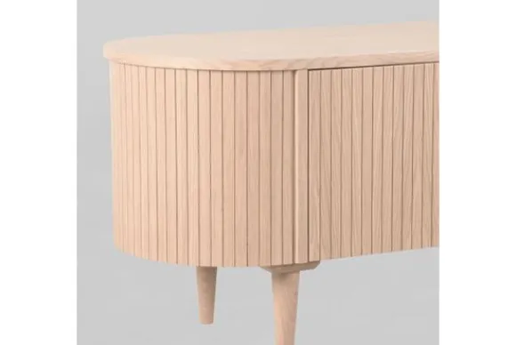 Tv-meubel Oliva Naturel ME-70.005 van het merk LABEL51 is een prachtig meubel uitgevoerd in eikenfineer. Een speels vormgegeven meubel waar al jouw spullen stijlvol in kunnen worden opgeborgen. Het tv-meubel is verdeeld in twee vakken, die ieder zijn afgesloten met een klep. Doordat de kleppen zijn voorzien van een druksysteem, krijgt het meubel een elegante look. De hoge poten geven het tv-meubel een luchtige uitstraling.