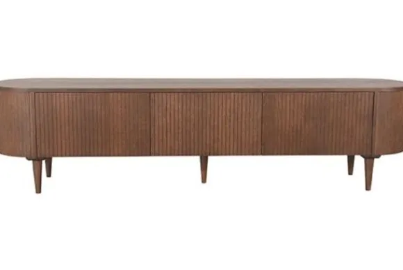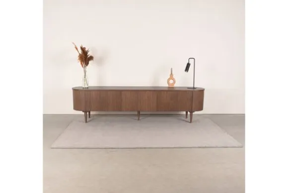 Tv-meubel Oliva Walnoot ME-70.007 van het merk LABEL51 is een prachtig meubel uitgevoerd in eikenfineer. Een speels vormgegeven meubel waar al jouw spullen stijlvol in kunnen worden opgeborgen. Het tv-meubel is verdeeld in drie vakken, die ieder zijn afgesloten met een klep. Doordat de kleppen zijn voorzien van een druksysteem, krijgt het meubel een elegante look. De hoge poten geven het tv-meubel een luchtige uitstraling.
