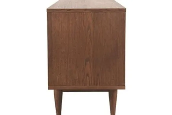 Tv-meubel Jule Walnoot ME-70.033 van het merk LABEL51 is een strak meubel, uitgevoerd in walnoot kleurig eikenfineer. Naast deze kleur is de Jule ook verkrijgbaar in de kleur Naturel. Een slim vormgegeven meubel waar op stijlvolle wijze spullen in opgeborgen kunnen worden. De fijn groeven op de deurtjes en lades van het tv-meubel accentueren op subtiele wijze het speelse karakter. Het tv-meubel heeft een vak met twee schuifdeuren ervoor. De kegelvormige poten geven het meubel een luchtige uitstraling.