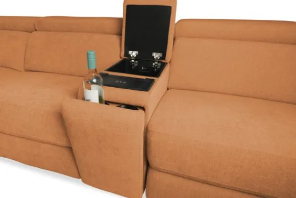 De elektrische relaxfunctie van bankstel Arizona zorgt voor pure ontspanning met één druk op de knop. De middenarmsteun is slim ontworpen met verborgen bekerhouders, een opbergvak met USB-A en USB-C koppeling, en een draadloos oplaadpunt voor je telefoon. Zo heb je alles wat je nodig hebt voor een ontspannen avond altijd binnen handbereik.