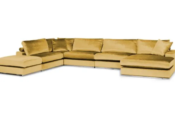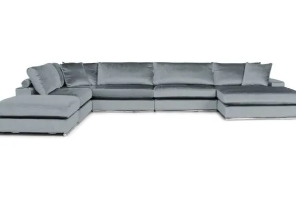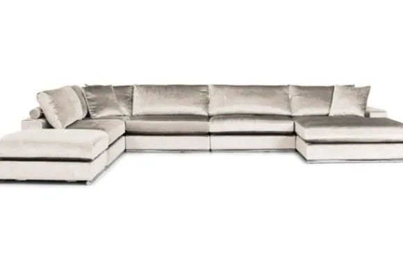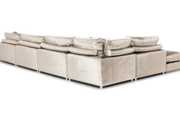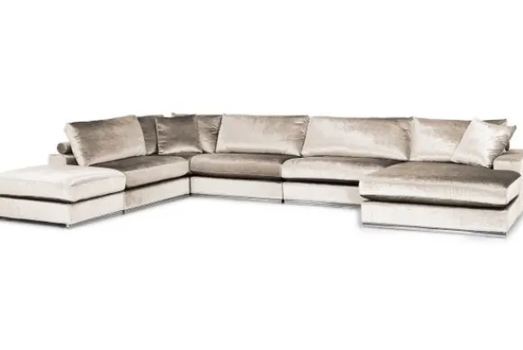 Bankstel Napels wordt standaard uitgevoerd inclusief sierkussens en met unieke chromen buizen onder de bank.