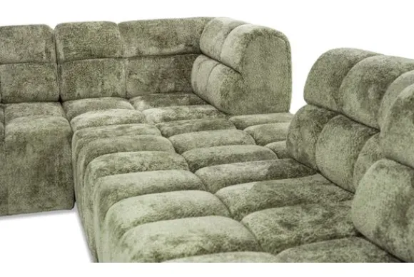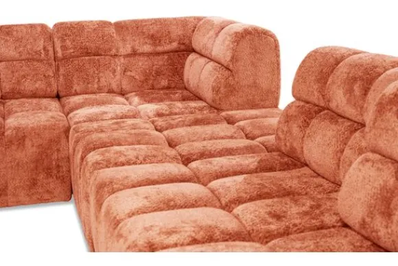 Dankzij de verstelbare rugleuningen bij alle zitelementen – met uitzondering van het hoekelement – biedt deze bank een ongekend zitcomfort dat volledig naar wens kan worden aangepast. Het strakke ontwerp en de geblokte zitkussens benadrukken het luxueuze karakter van deze bank en geven het geheel een uitnodigend gevoel.
